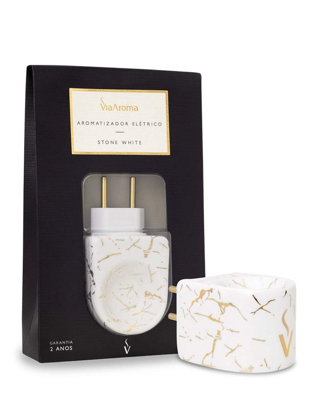 Material: porcelana Cor: branca com efeito marmorizado em dourado Tensão: 127 - 220V Potência: 5W/h